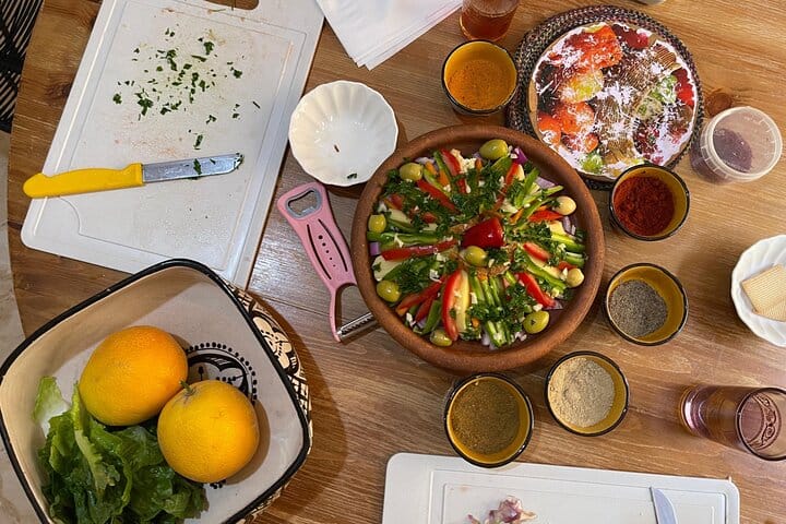 No experience is needed! We'll teach you how to prepare a full Moroccan meal, including fresh salads, chicken or spiced meatball tagines, and a fruit dessert.